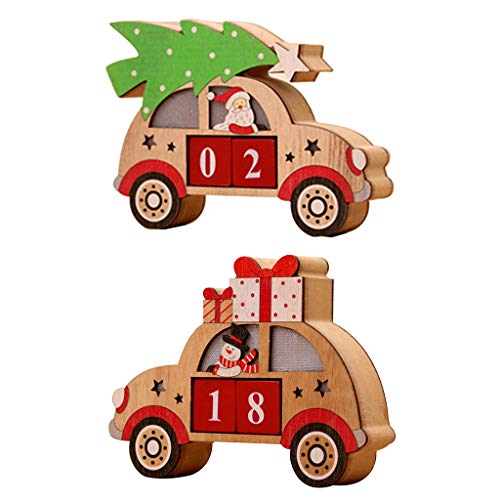 La ligne ci-dessous sont affichées les informations complètes concernant museourstyty Calendrier de l'Avent en bois avec LED en forme de voiture et blocs peints:
