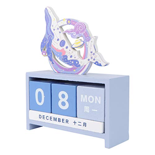 Le Titre Du Livre : ABOOFAN Calendrier décoratif en bois bleu ciel, cubes rustiques, calendrier de bureau, mois, jour d