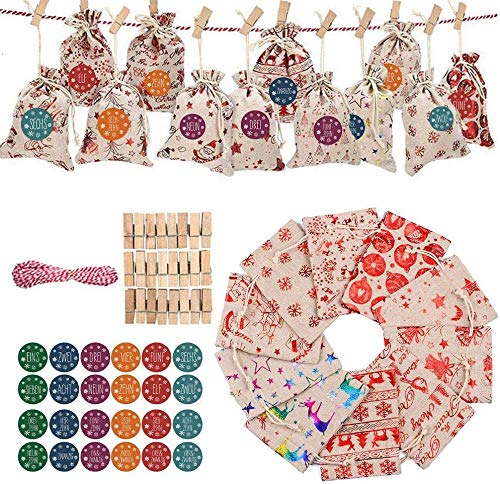 Lot de 24 calendriers de l'Avent de Noël – Sac cadeau en toile de jute avec cordon de serrage, cl Télécharger PDF EPUB eBook